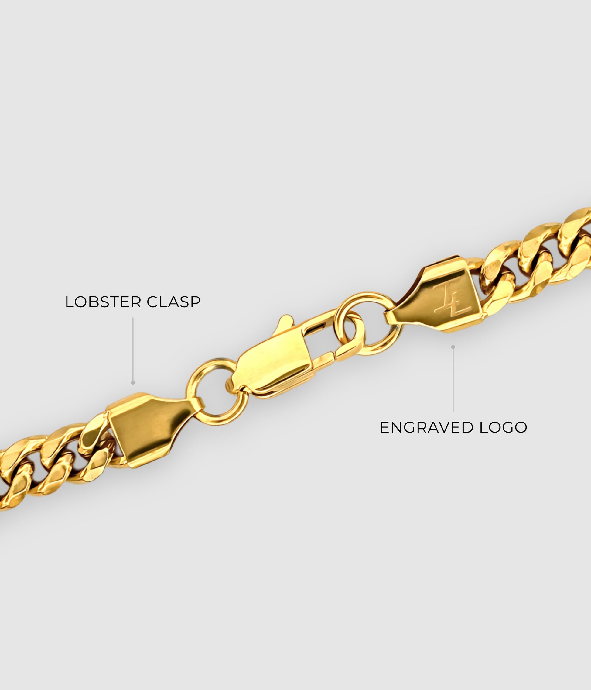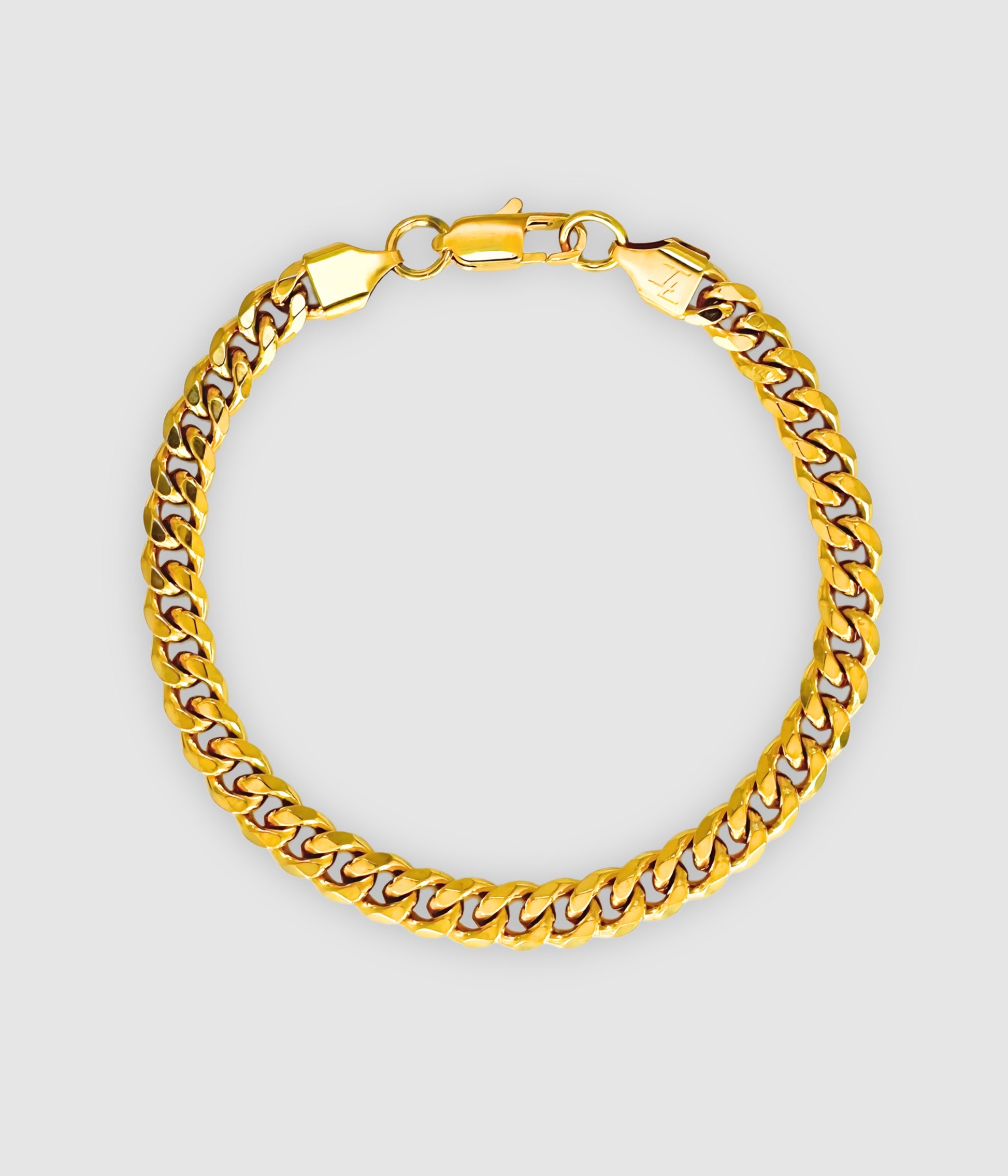Level up your look with The 6mm 18K Gold Gym Bracelet– the perfect blend of shine and strength. Crafted from premium stainless steel and finished with a high-quality PVD 18K gold coating with a polished finish, this Cuban Link Bracelet delivers long-lasting durability and a brilliant, eye-catching shine that won’t fade or tarnish.