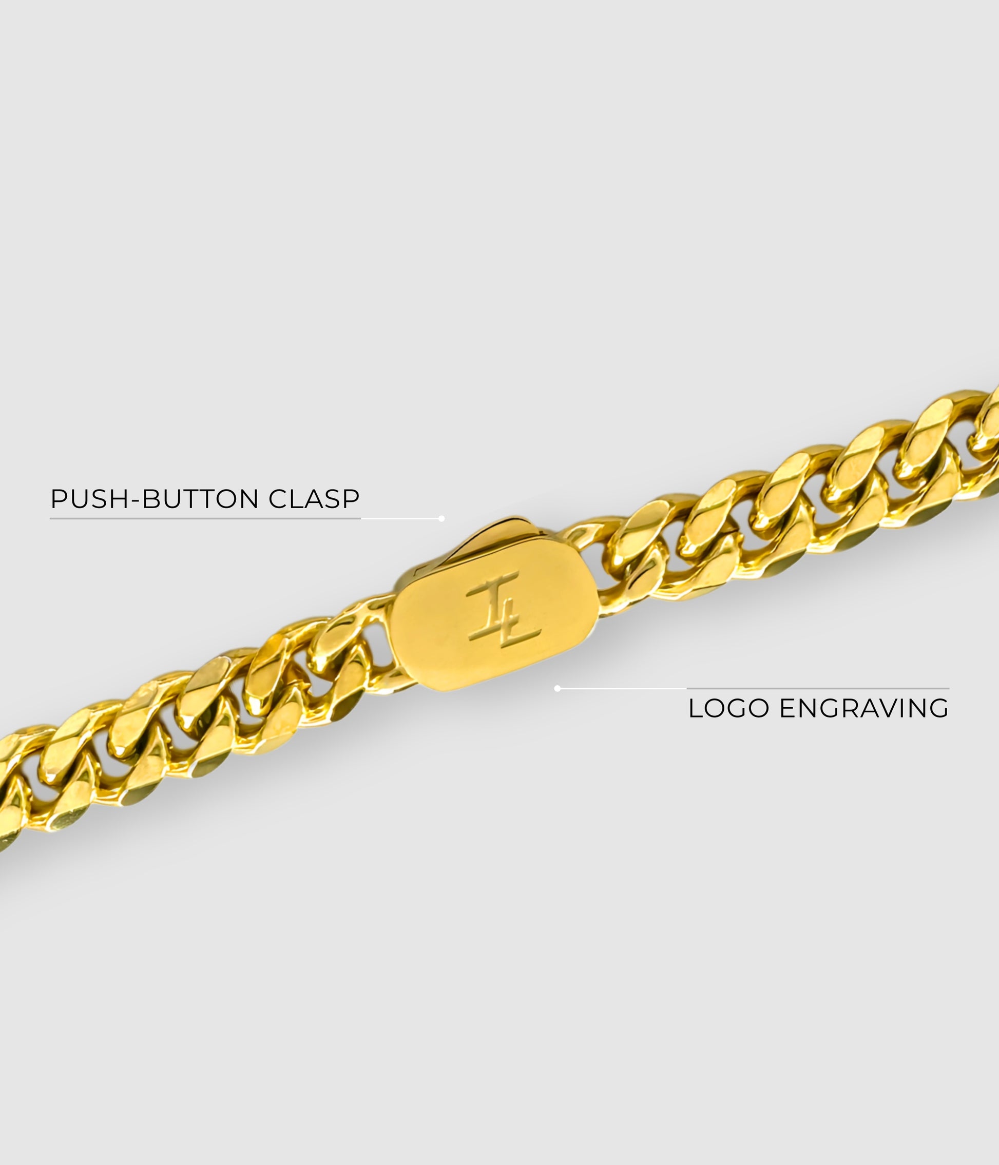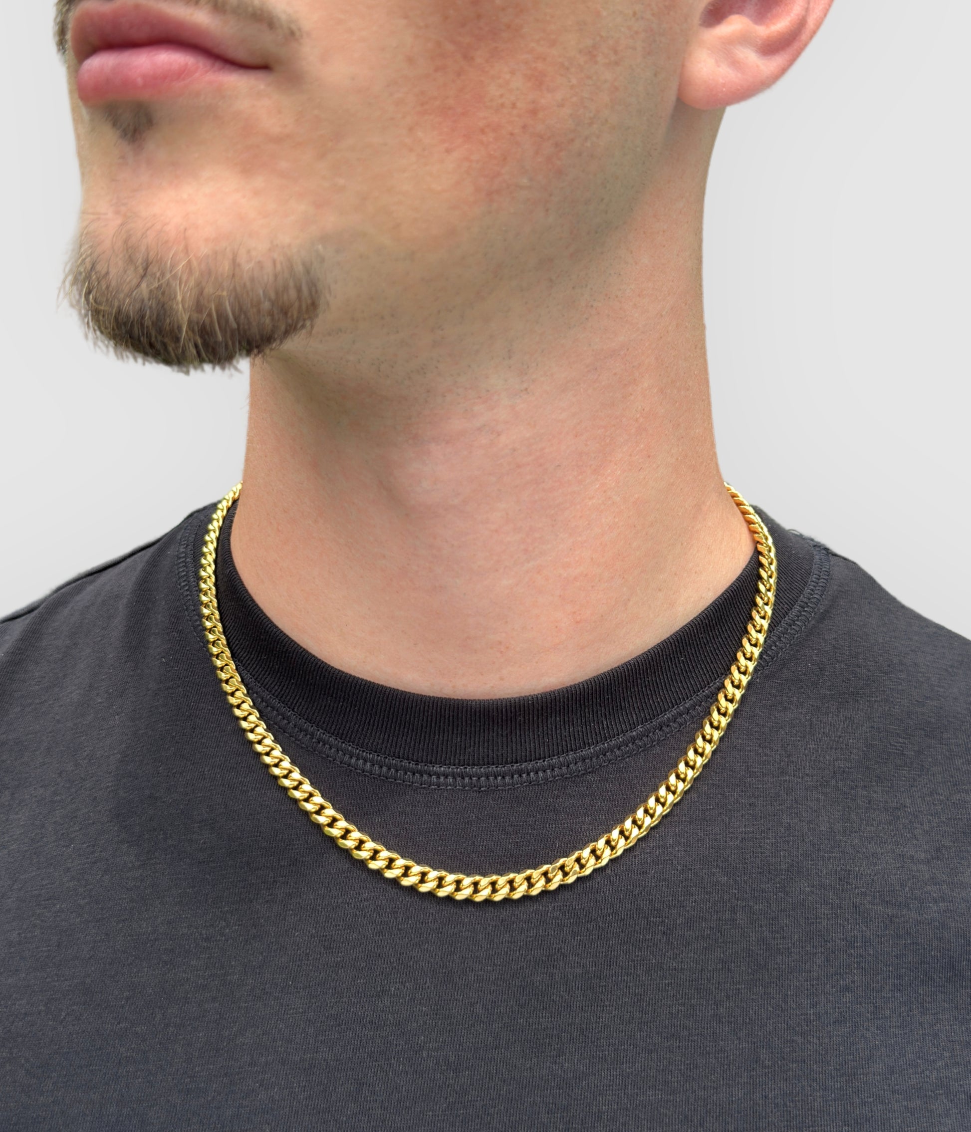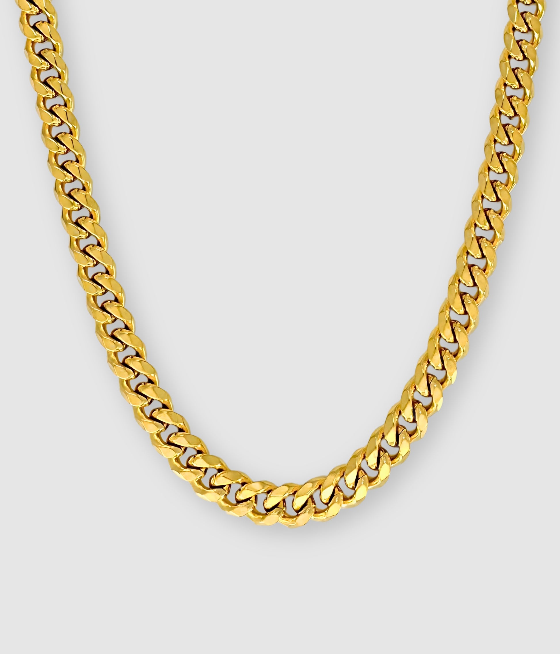 Level up your look with The 6mm 18K Gold Gym Chain – the perfect blend of shine and strength. Crafted from premium stainless steel and finished with a high-quality PVD 18K gold coating with a polished finish, this Cuban Link Chain delivers long-lasting durability and a brilliant, eye-catching shine that won’t fade or tarnish.