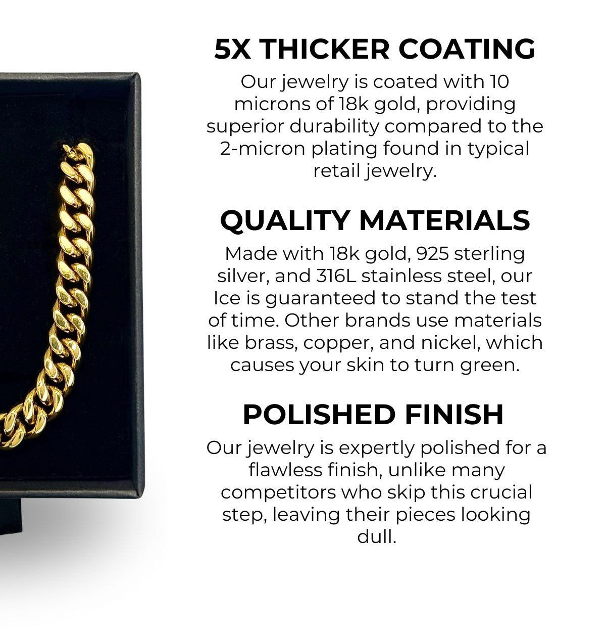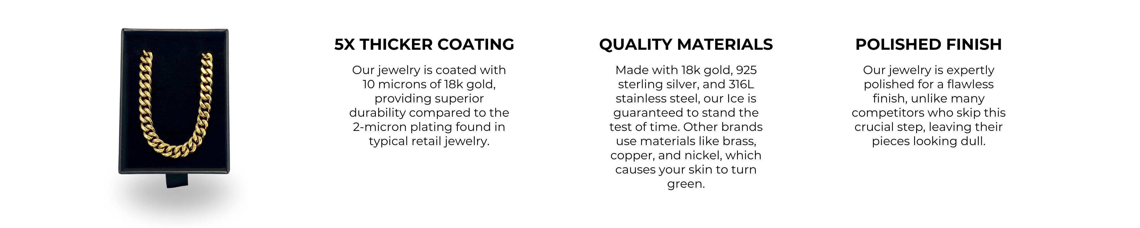 SWEAT/WATERPROOF: Each item is crafted with 18k gold, sterling silver or stainless steel, designed to take on day to day conditions.